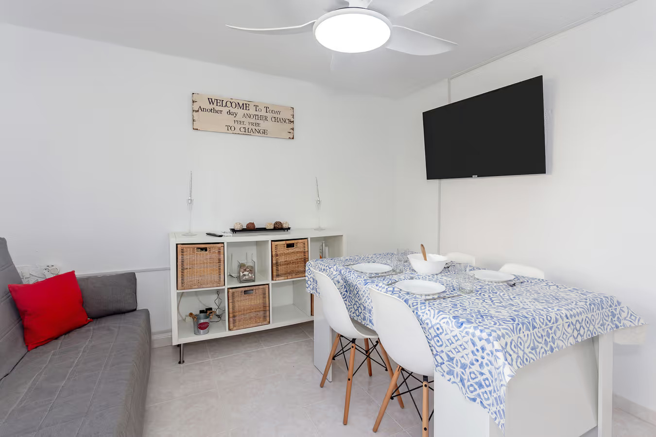 Salón luminoso, cocina completa, dormitorios confortables y todo lo necesario para sentirte como en casa durante tu estancia en Menorca.